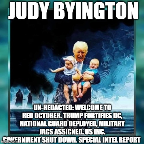 Judy Byington: Un-Redacted: Welcome To Red October. Trump Fortifies DC, National Guard Deployed, Military JAGs Assigned. US Inc. Government Shut Down. Special Intel Report