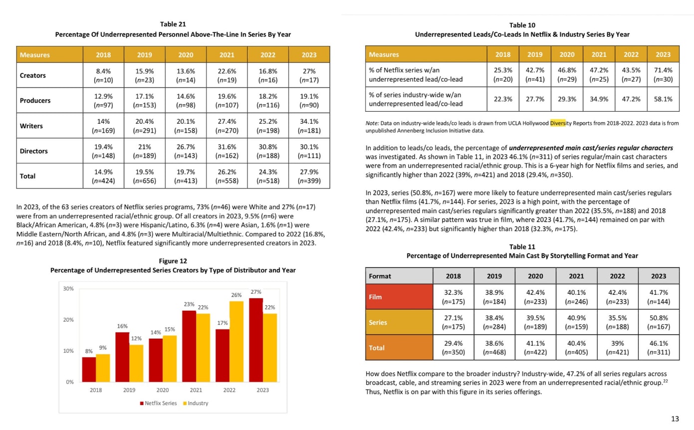 In their inclusion & diversity report, they celebrate that the percentage of racially underrepresented directors and lead characters has been growing significantly over the past few years.