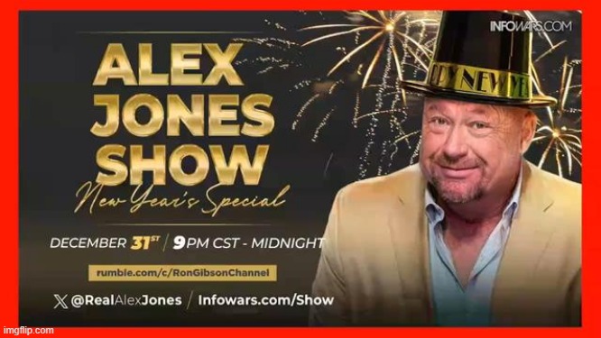 NEW YEAR’S WITH ALEX JONES & AN INCREDIBLE LINEUP OF INFORMATIVE GUESTS & PATRIOTS AS WE BREAK MAJOR STORIES, TAKE ON THE GLOBALISTS, AND CHRONICLE THE EPIC YEAR THAT WAS 2025 WHILE LOOKING FORWARD TO 2026 AND BEYOND!