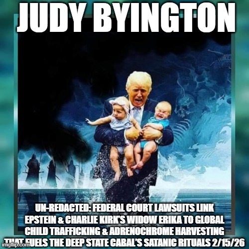 Judy Byington: Un-Redacted: Federal Court Lawsuits Link Epstein & Charlie Kirk’s Widow Erika to Global Child Trafficking & Adrenochrome Harvesting That Fuel The Deep State Cabal’s Satanic Rituals 2/15/26