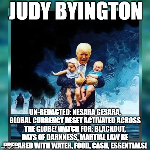 Judy Byington: Un-Redacted: Nesara Gesara, Global Currency Reset Activated Across the Globe! Watch For: Blackout, Days of Darkness, Martial Law Be Prepared With Water, Food, Cash, Essentials! (Video)