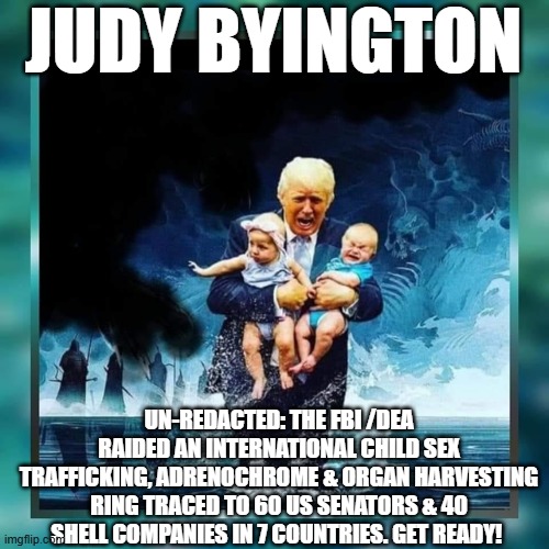 Judy Byington: Un-Redacted: The FBI Raided a Child Sex Trafficking, Adrenochrome & Organ Harvesting Ring Traced to 60 US Senators & 40 Shell Companies in 7 Countries. Get Ready! (Video)...