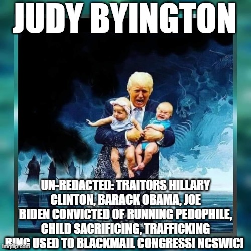 Judy Byington: Un-Redacted: Traitors Hillary Clinton, Barack Obama, Joe Biden Convicted of Running Pedophile, Child Sacrificing, Trafficking Ring Used To Blackmail Congress! (Video)
