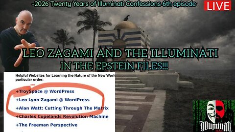 THE LEO ZAGAMI SHOW 2006-2026 Twenty Years of Illuminati Confessions 6th episode with Leo Zagami featuring Confessions of an Illuminati + ILLUMINATI NEWS Saturday, February 7, 2026 at 3pm PST (4pm MT/ 5pm CST/ 6pm EST) and SUPPORT US by getting Zagami’s latest bestseller ‘THE RISE AND FALL OF A FRANKIST MONSTER.’ Exposing Jeffrey Epstein and the Most Powerful Jewish Sect in the World’: