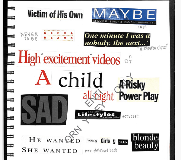 The journals are made of words and phrases cut out from magazines, combined with handwritten additions of her own.