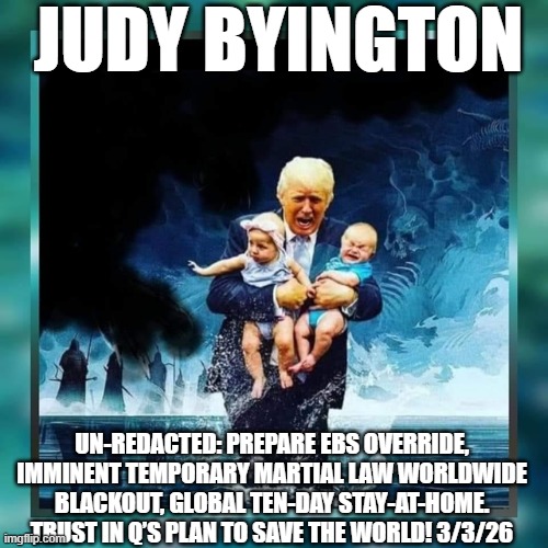 Judy Byington: Un-Redacted: Prepare EBS Override Imminent Temporary Martial Law Worldwide Blackout Global Ten Day Stay-At-Home Trust in Q’s Plan To Save The World! 3/3/26