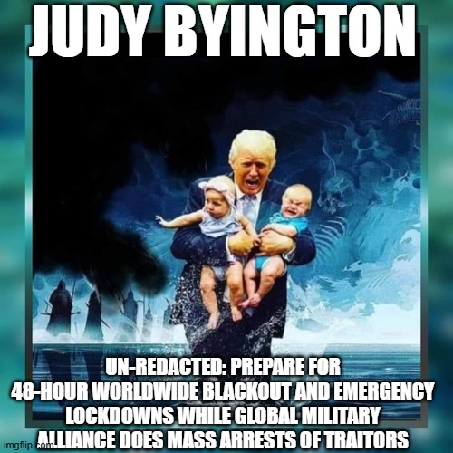 Judy Byington: Un-Redacted: Prepare For 48-Hour Worldwide Blackout & Emergency Lockdowns While Global Military Alliance Does Mass Arrests of Traitors (Video)