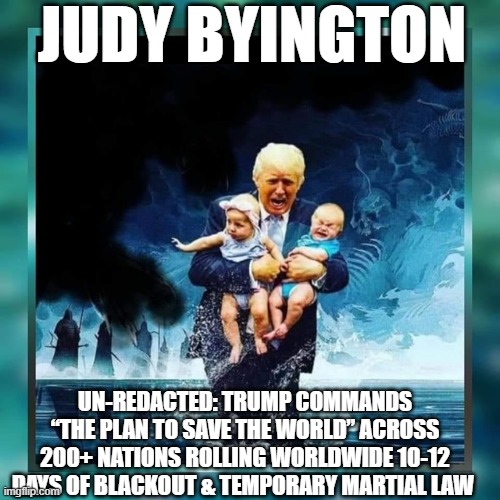 Judy Byington: Un-Redacted: Trump Commands “The Plan To Save The World” Across 200+ Nations Rolling Worldwide 10-12 Days of Blackout & Temporary Martial Law (Video)