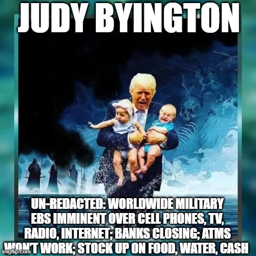 Judy Byington: Un-Redacted: Worldwide Military EBS Imminent Over Cell Phones, TV, Radio, Internet; Banks Closing; ATMs Won’t Work; Stock Up On Food, Water, Cash (Video)