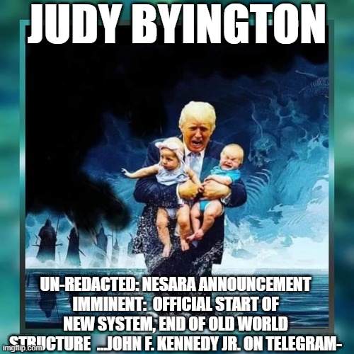 Judy Byington: Un-Redacted: NESARA Announcement Imminent: Official Start of New System, End of Old World Structure …John F. Kennedy Jr. on Telegram (Video)