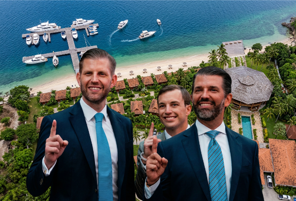 IMAGE: Donald Trump Jr., Eric Trump and Zach Witkoff, co-founder and CEO of World Liberty Financial – Picture recreated based on the Timor-Leste AB Resort rendering