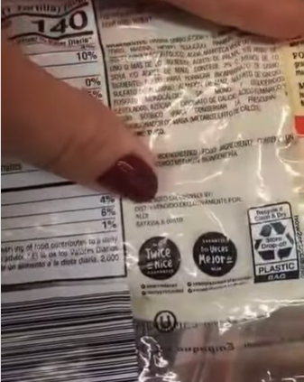 A lady at the grocery store shows that every single thing she picks up now says “Contains bioengineered ingredients”