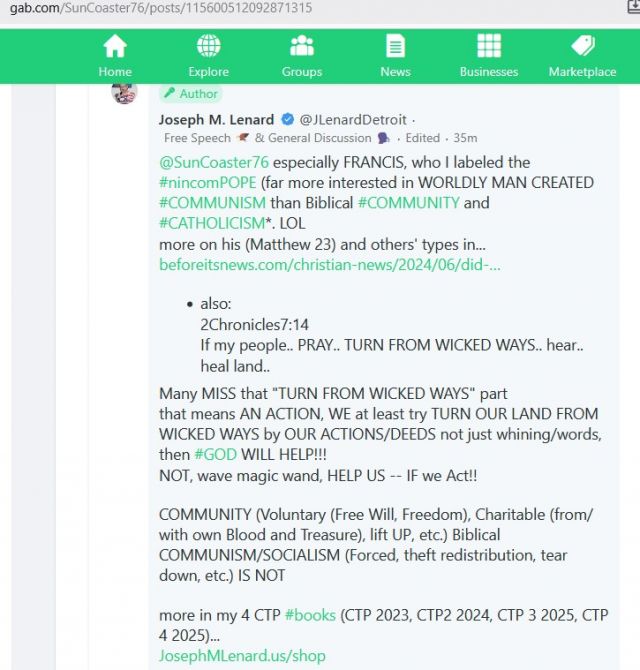 I left the KNIGHTS OF COLUMBUS organization over the “rule” says “do not criticize #Pope” – nope, sorry, not happening anymore, is JUST A MAN not above criticism!!! I fellow NO MAN (in that sense, can/will work with those rooted in Bible) ON THIS PLANET – No King but King #JESUS (which is really what the #LEFTARDS #NoKingsRally about – not just anti American/Western but Anti-#Christian).