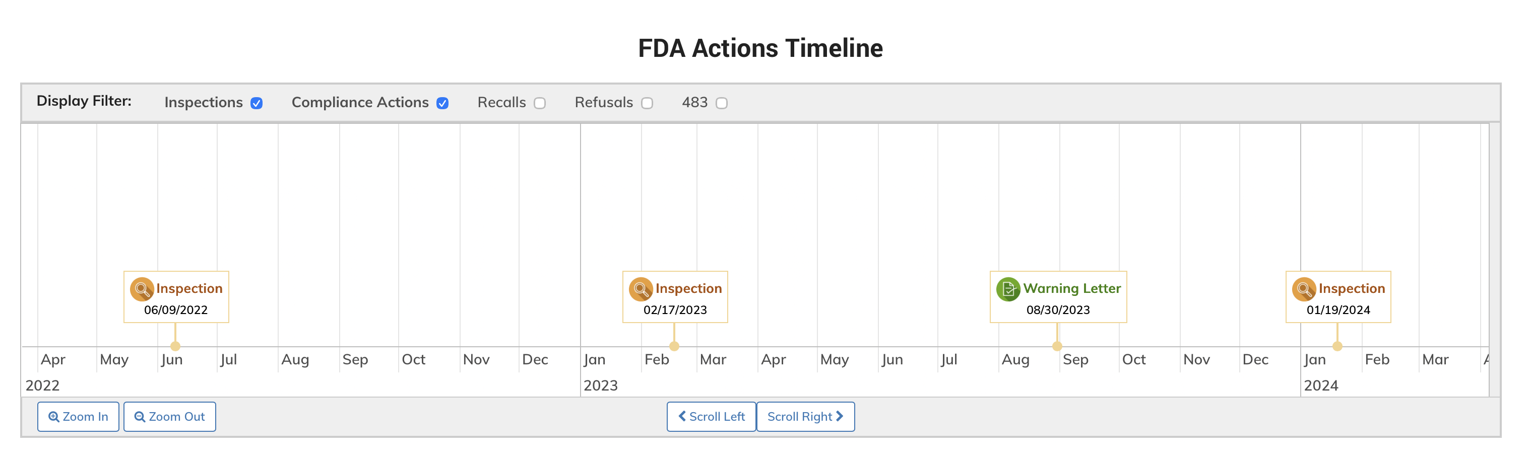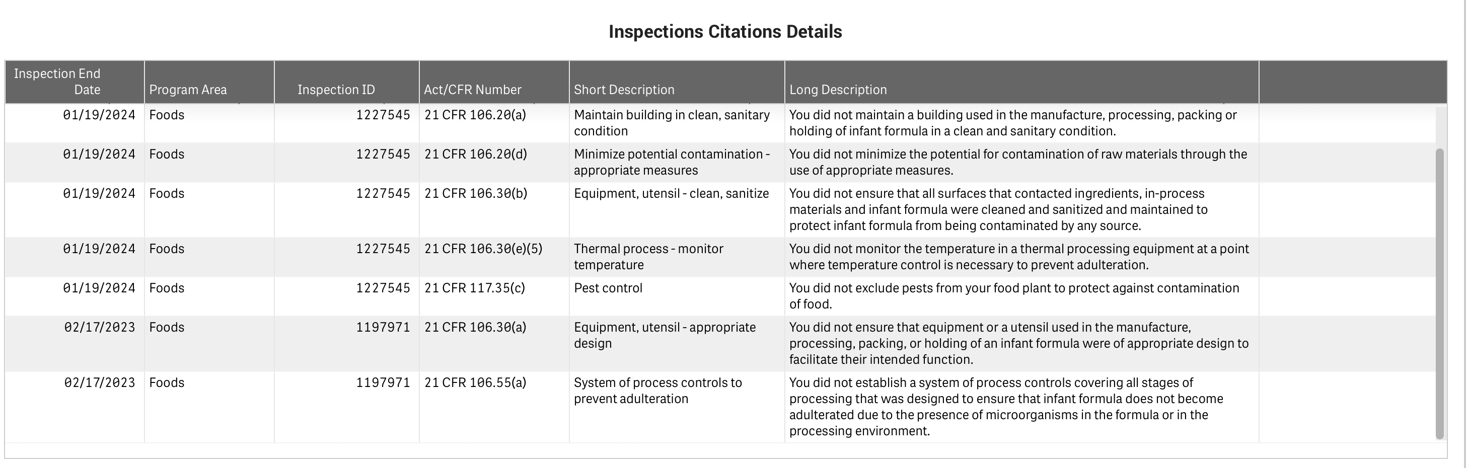 The FDA conducted its next inspection eleven months later. According to information posted on the FDA’s inspection data dashboard, investigators uncovered several serious problems.