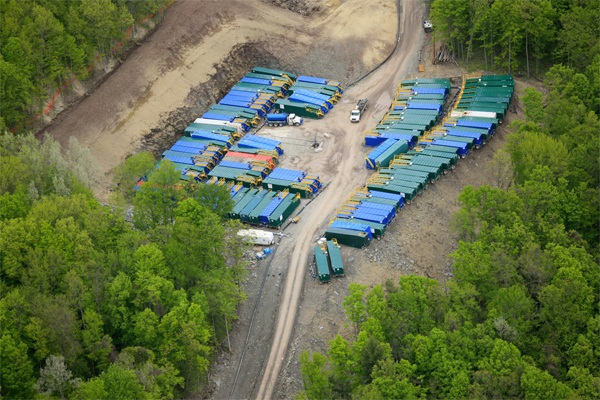 Fracking tanks lined up at Marcellus Shale drilling site near Dimock, Pennsylvania in 2010. Photo copyright J Henry Fair.