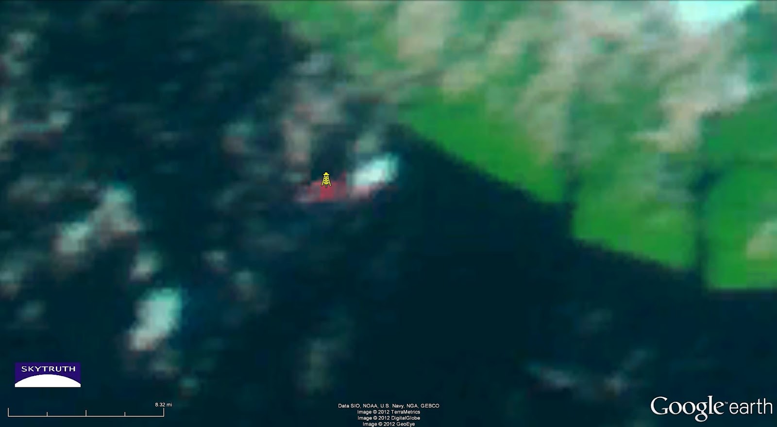 This MODIS image taken on February 3 (and this one from February 5) shows the ongoing fire where the KS Endeavor drill rig used to be, before it toppled over and sank: