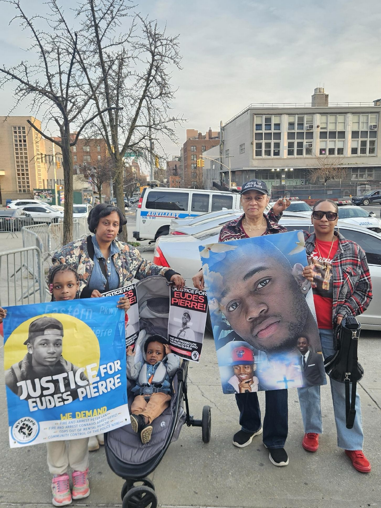 Brooklyn, NY – Dozens of community members gathered for a picket at the NYPD’s 71st Precinct in Brooklyn on March 31. In December 2021, 26-year-old Haitian American Eudes Pierre dialed 911 while experiencing a mental health crisis. Instead of assistance or care, officers Peter Lan and Conrado Abreu-Gerez from the 71st Precinct followed him in and out of a train station and to his home before shooting him ten times.