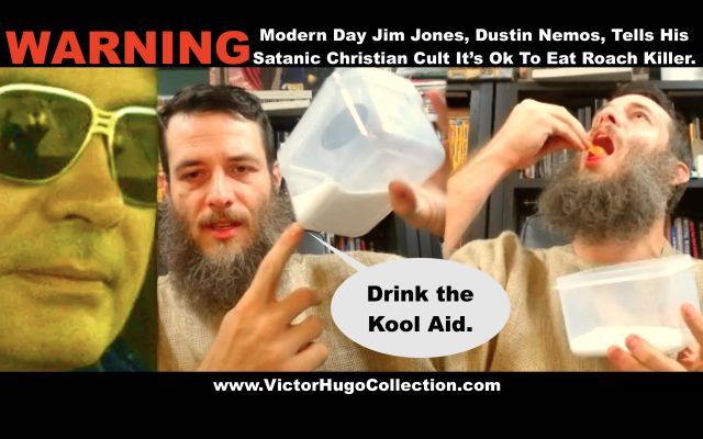 Dustin Nemos Modern Jim Jones Cult Leader Kool Aid Moment Tells His Satanic Christian Congregation Its Ok To Eat Roach Killer.