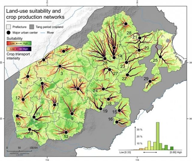 Model-based simulation of land-use suitability during the late Tang Dynasty. Source