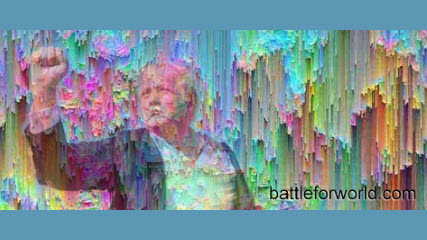 In the very center of this graphic composition, one can discern an imprint that almost perfectly mimics the outline of Trump’s body at the moment he was shot at in Butler, Pennsylvania, in 2024. Back then, with blood on his face, he raised his fist in the air, shouting, “Fight! Fight! Fight!” The photograph flew around the world. And it was the imprint of that very image that became part of the page design on Henry Martinez’s Twitter… half a year before the assassination attempt itself. (Battleforworld.com: ‘Pareidolia’ is the psychological phenomenon where the mind perceives a meaningful image or pattern from a random or ambiguous stimulus.)