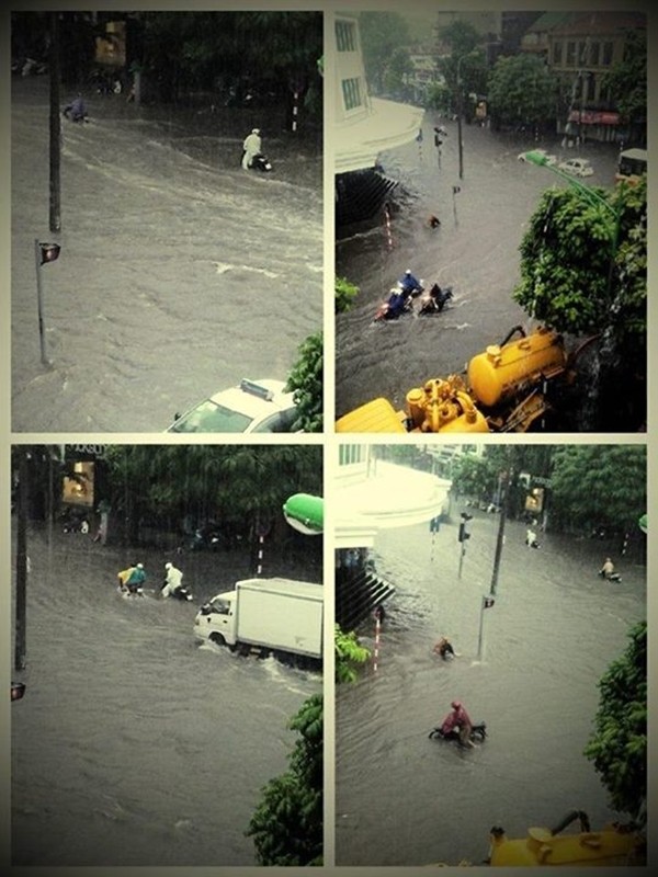 Sau một ngày mưa to, Hà Nội ngập lụt nặng, bạn trẻ nổi hứng chế ảnh châm biếm hoàn cảnh “phố hoá thành sông”.