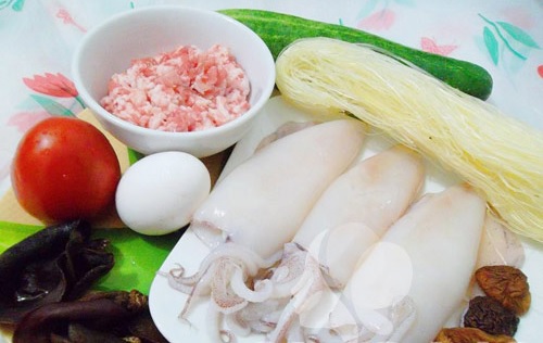 Nguyên liệu làm món mực nhồi thịt hấp là: