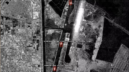A Chinese MizarVision synthetic aperture radar satellite photograph reportedly captured the U.S. Navy carrier strike group led by USS Gerald R. Ford entering the Suez Canal (Enlarged image …)