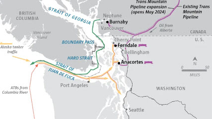 BATTLEFORWORLD.COM | April 3, 2026: What many do not know is that the United Sates ships oil along the West Coast, with Washington state playing a major role in receiving and transporting crude oil via tankers, pipelines, and rail. Refineries in the Puget Sound area (including Blaine, Anacortes, and Tacoma) process crude from Alaska, Canada, and North Dakota to supply the region, with significant tanker traffic moving through the Salish Sea. And one of the major cities on the Puget Sound include Seattle.